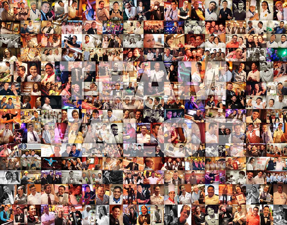 It took over 3 weeks to complete this mammoth photo-project and the final piece that I'm proud to present to the ship is a 231-piece Photo Montage, selected from 2000+ shots that capture the essence of the crew-members in their working environment. Every shot is meticulously and strategically placed as to keep every department separated and not in close clusters, so the viewer must keep looking through the whole montage to find other friends from their departments.