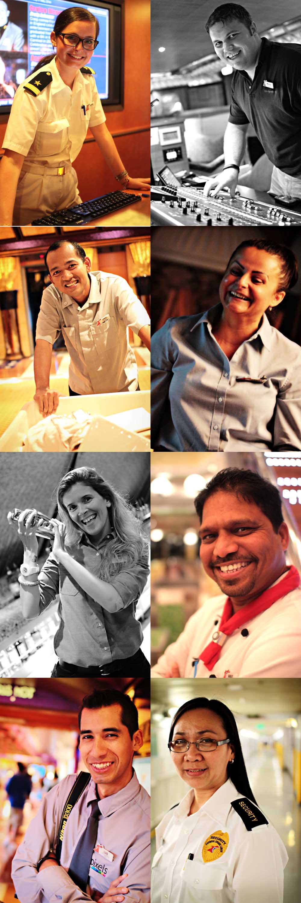 With over 1100 employees working onboard, I took on the challenge of capturing crewmembers from every working department on the ship. This involved: